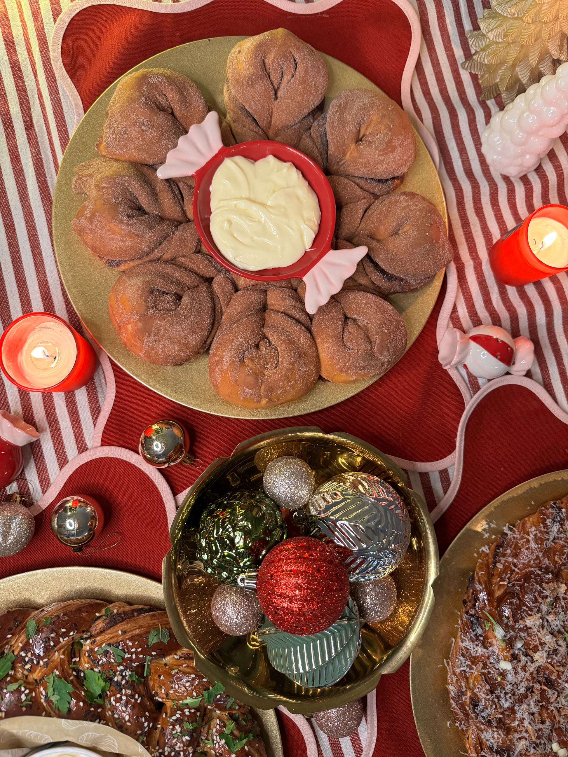 Our famous cinnamon swirl, softly spiced, generously swirled and baked to fluffy perfection.Completely vegan… but you’d never guess. Comes with side cream cheese to dip in.