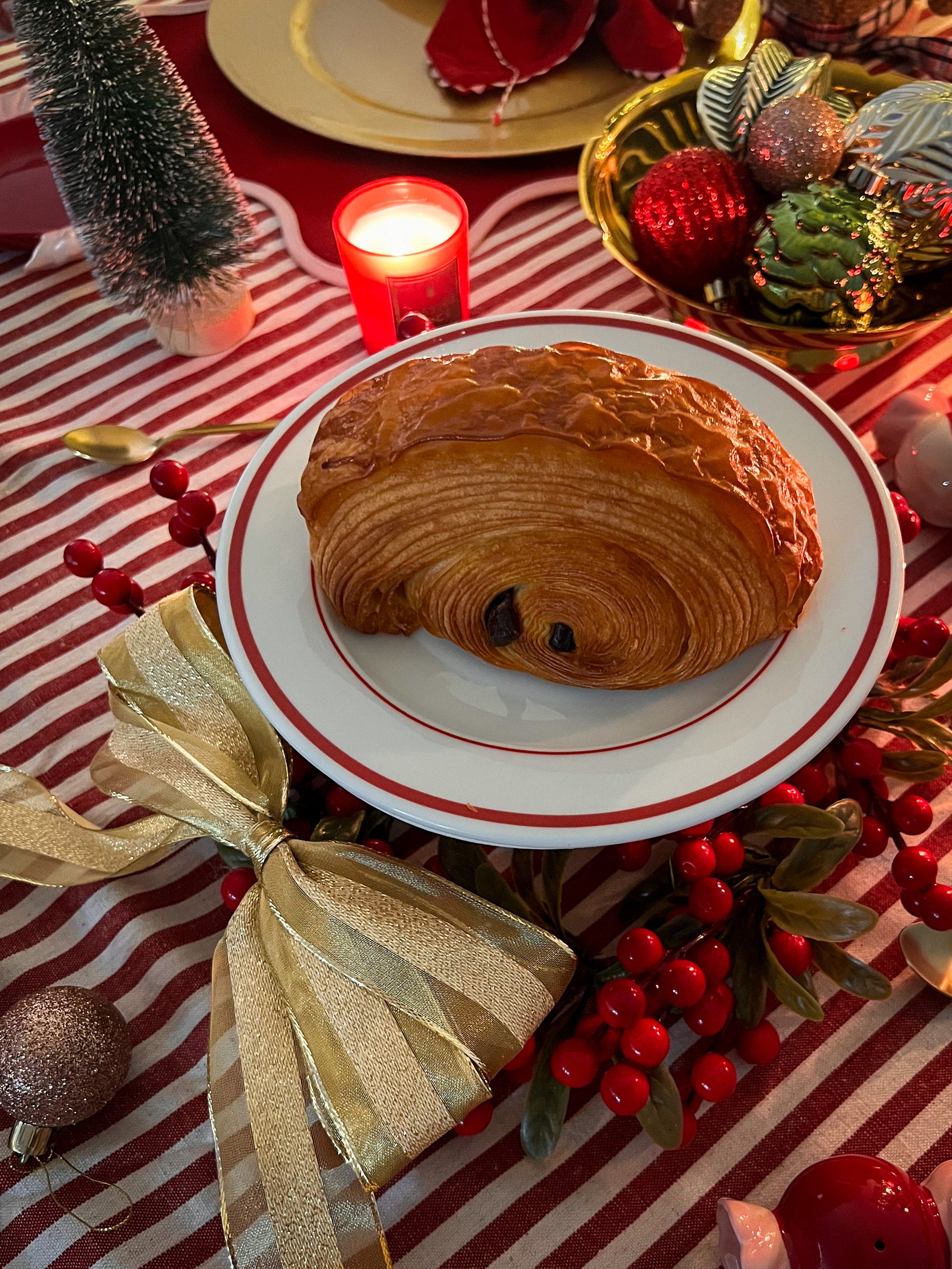 A traditional French pastry made with crisp, buttery laminated dough wrapped around rich dark chocolate batons.